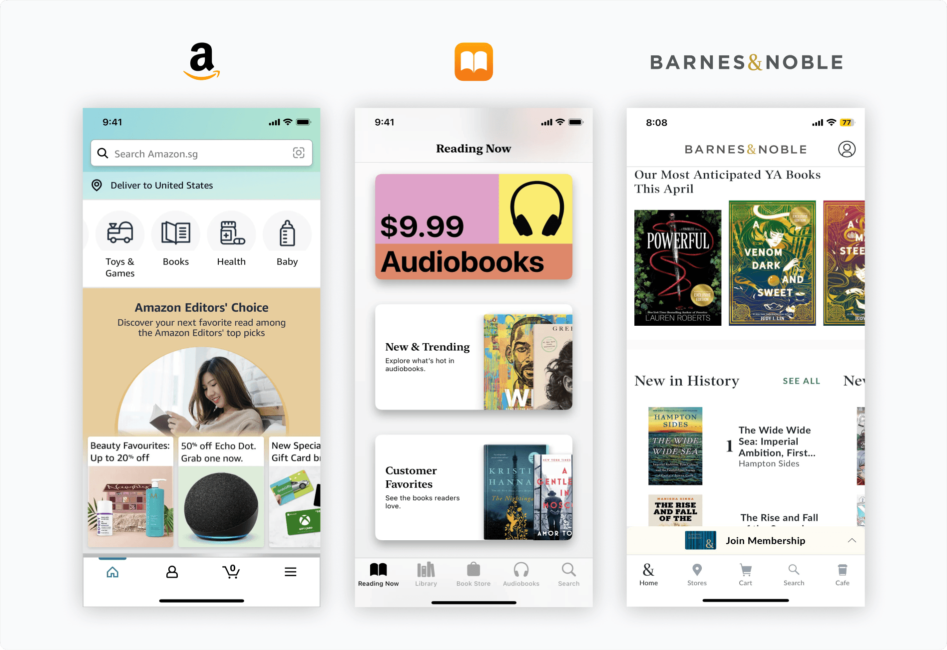After reviewing a few online book sites, I found their visual design unappealing and overwhelming with the amount of information shown. This challenge detours users from returning back to the app as well as adapting to poor user design.