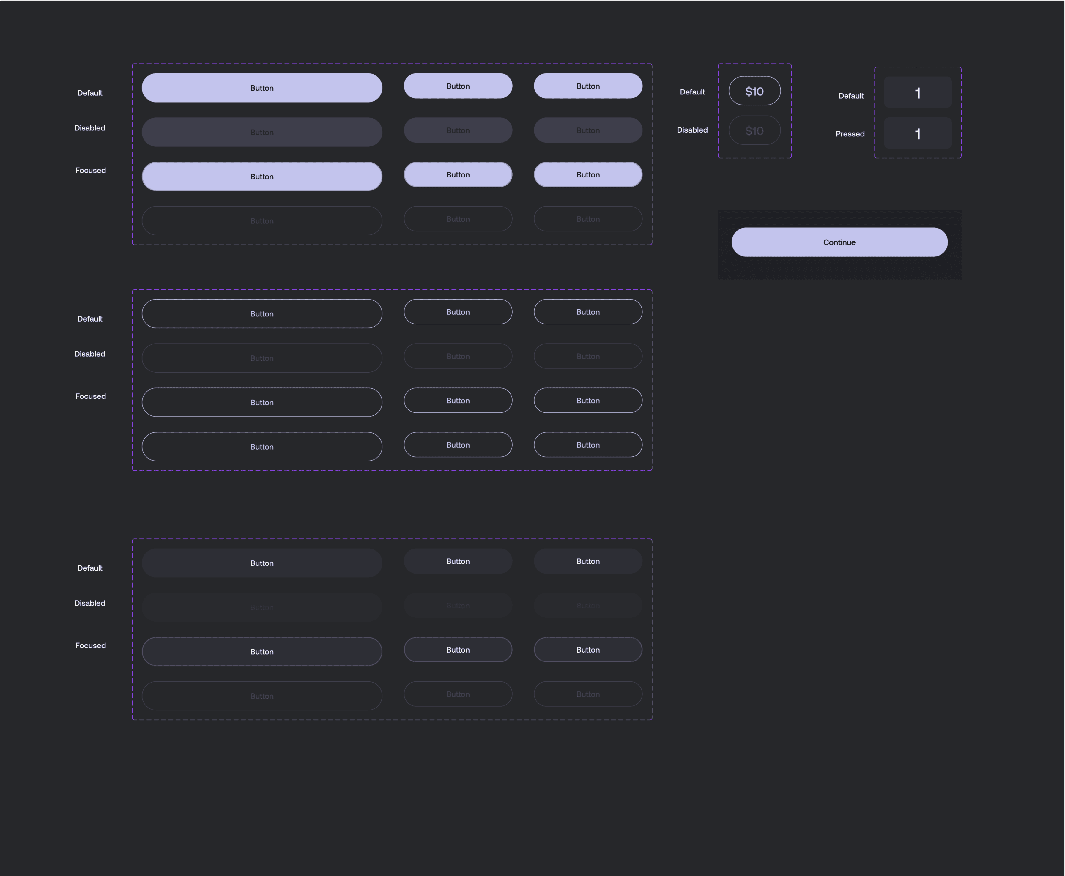A closer look at the button components I defined as part of our design system. I designed different states (default, disabled, focused) and variants to support diverse use cases across the app. This helped us stay consistent early on and align on spacing, styles, and interaction patterns.