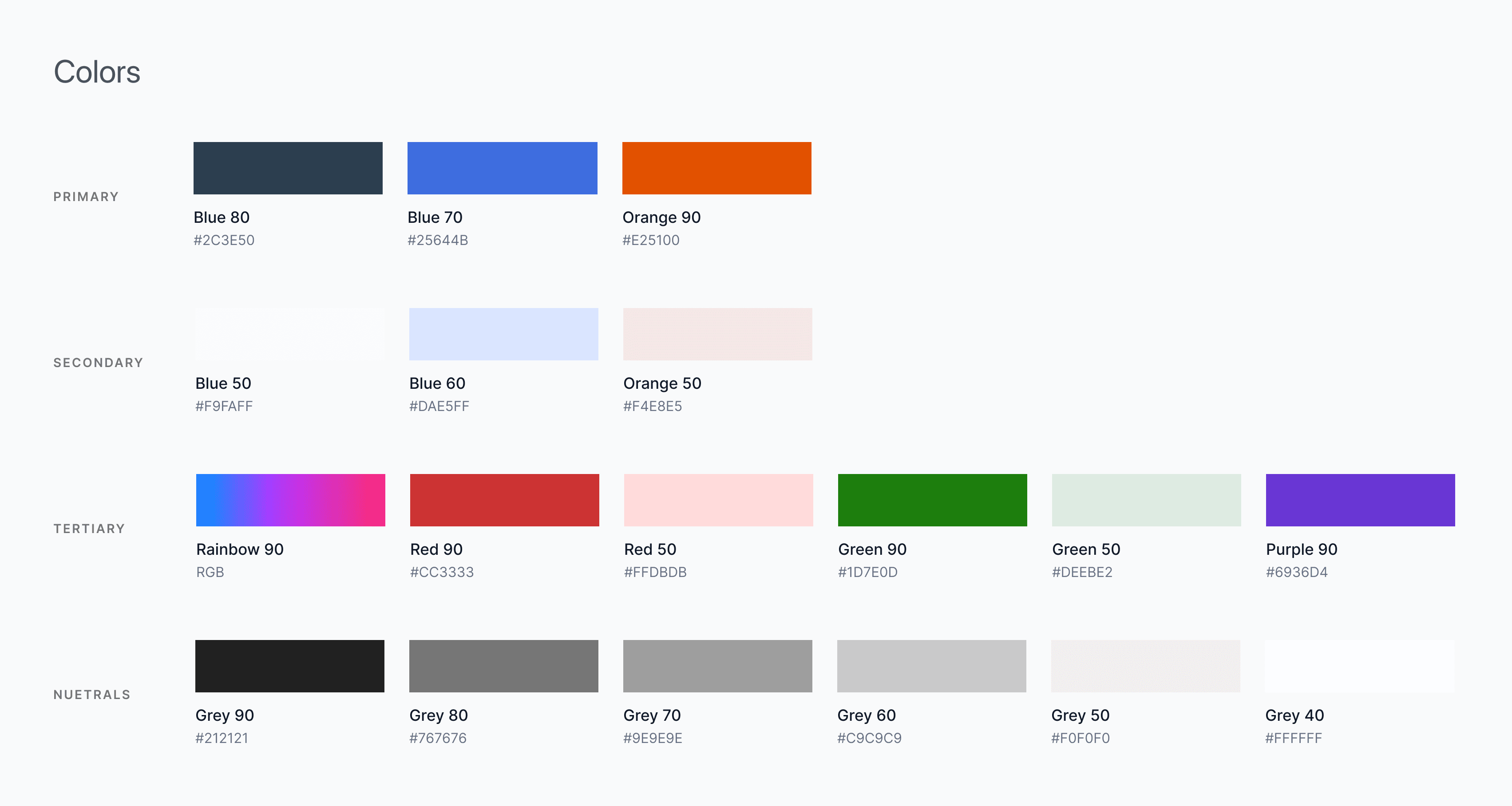 I used orange that serves as NED's primary color, contrasting with brand blue for buttons on NED cards. Secondary for softer colors, tertiary for icons, and vibrant gradient highlights AI moments, with neutrals providing balance.